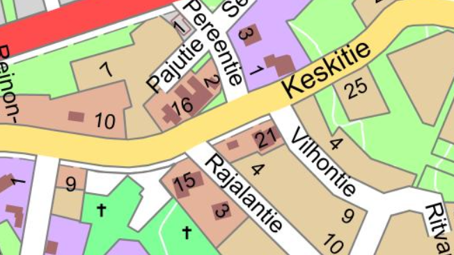 Perhepuisto on kirkonkylän koulun ympärillä ja alueella on myös kirjasto ja liikuntahalli sekä pienpalloilukentät.